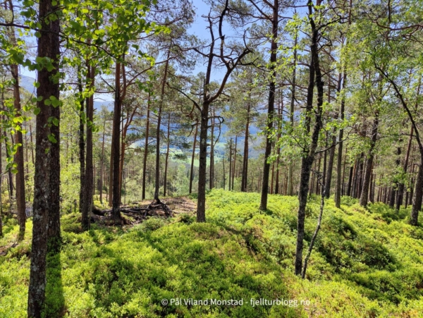 Det er ikke bare høye topper i Suldal. Også noen lave. En slik skogskledd ås sto på programmet denne fine og varme søndagen. Bilen ble parkert ved bommen inn til skytebanen mellom Lindum og avkjøringen til Gullingen.