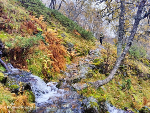 Stien/stølsveien går innover langs Gaukstølsåna og passerer flere støler: Gaukstølen, Skitstølen og innerst, Krokvasstølen. Etter all nedbøren de siste dagene var det mye vann i terrenget. De største bekkene innover hadde bro, så det var ikke noe problem å komme tørrskodd over.