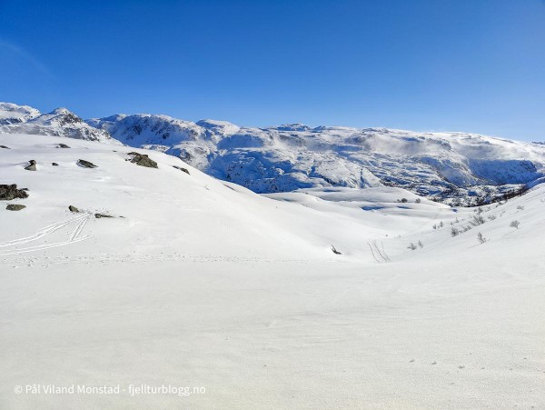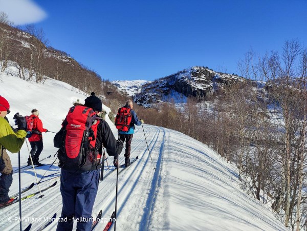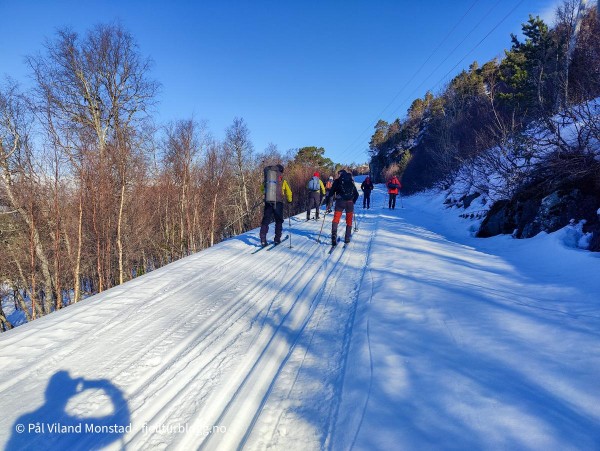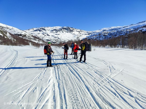 Suldal turlag hadde annonsert skitur til Botnanuten, og det var ingen grunn til ikke å melde seg på. Turen startet ved Surdal kraftstasjon, på grei løypetrase innover anleggsveien langs Lauvastølsvatnet. Løypa fortsatte videre helt inn til Hellestølen. Her tok turfølget på ni en god matpause. Feller av ulike varianter og lengder ble lagt under skiene, for herfra ville turen videre gå opp lia, til dels bratt. Alle hadde bra med feste opp gjennom fjellbjørkeskogen, og etter hvert passerte vi tregrensa og den verste stigningen var unnagjort for denne gang.