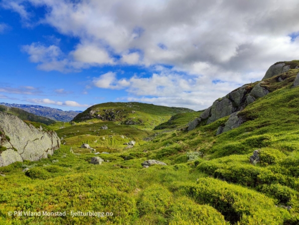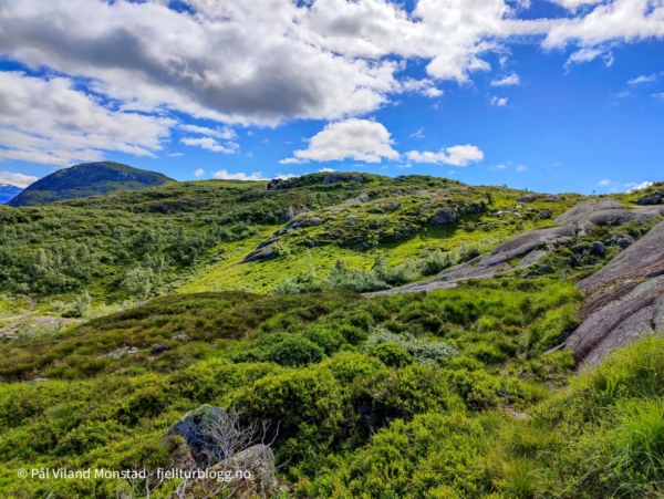 Første topp på en flerdagerstur til Suldal var Faurlinuten. Jeg kjørte til Nesflaten, og derfra opp anleggsveien mot Finnabuvatnet. En fin grusvei som gjør at man enkelt kommer langt til fjells.
