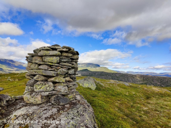 Etter å ha tatt en del høydemeter dreide jeg vestlig og sørvestlig under noen bergskrenter. Ved Møsekleiv kom jeg inn på en ganske tydelig sti som jeg fulgte i riktig retning. Ferden gikk inn Stordalsbrotet, før jeg gikk opp noen skar i retning Tysdalsvatnet. Derfra og opp til toppen gikk det radig.