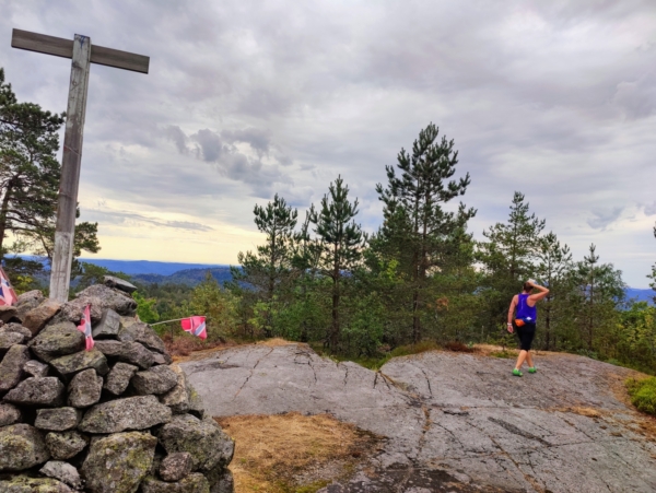 Rett før varden på toppen var det et utsiktspunkt med fin utsikt over Grenland. En mindre brukt sti førte videre til varden på toppen, rundt hundre meter videre. Varden lå inni skogen, og herfra var det mindre utsikt enn fra utsiktspunket.