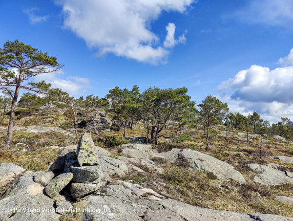 Jeg passerte noen småvarder på ferden, og så dukket det opp to større varder, der toppen i følge kartet skulle være. Litt kontrollmåling med GPS viste at den nordligste var en meter lavere enn den sørligste.