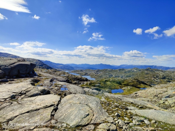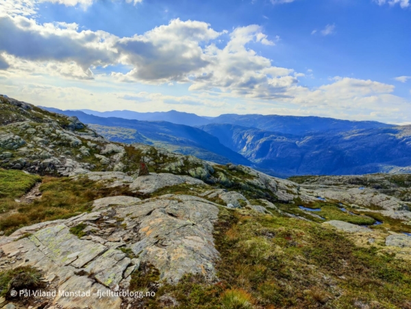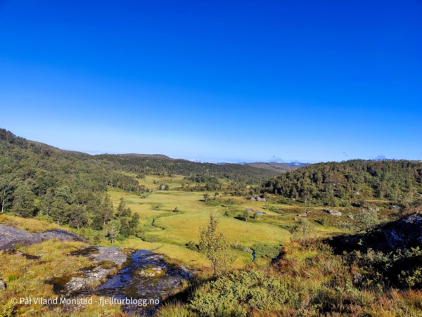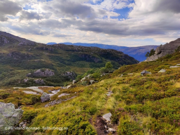 Denne siste etappen, fra parkeringsplassen og ned til Ølen kan fint anbefales hvis du skal ta buss videre fra bussterminalen i Ølen eller båt mot Bergen. Mye triveligere etappe enn å følge grusveien ned til E134, og asfalt derfra.