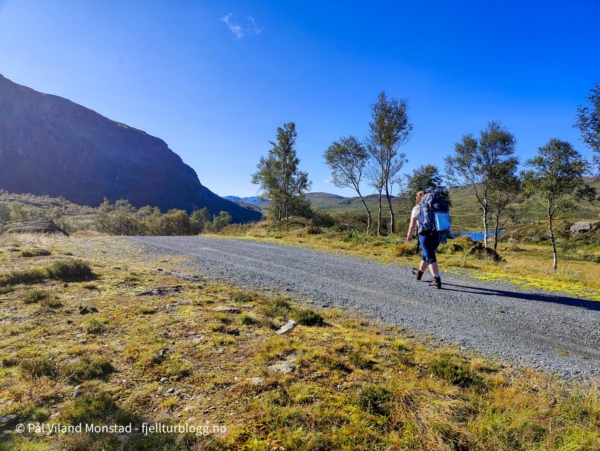 Å våkne til sol var relativt nytt på turen vår, men det var altså tilfellet på dag fem. Fra hytta gikk turen over store strekk med fast fjell. Mye flatere og mer lettgått enn dagen før. Det gikk derfor radig sørover mot Grindheimsvatnet. Derfra fulgte vi grusvei noen hundre meter, før vi tok av på sti i sørlig ,og etter hvert sørvestlig retning mot Krokavatnet. Stien var stedvis særdeles våt og sørpete. Ikke overraskende etter all nedbøren. Øst for Krokavatnet kom vi på nytt inn på anleggsvei, som vi fulgte i flere kilometer, til dammen i nordre ende av Ilsvatnet.