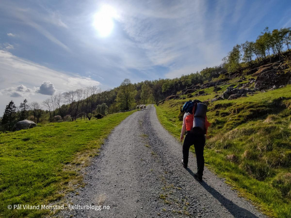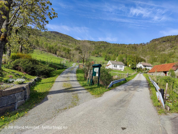 Turen starter på lang grusvei, opp til venstre her.