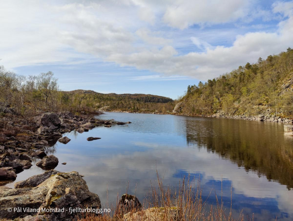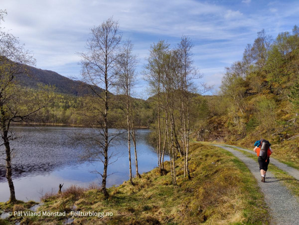 Lett å gå. Vi passerer noen småvann på turen oppover.