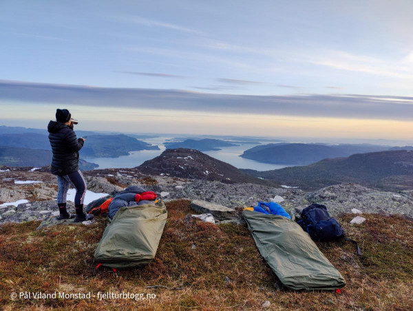 Sengene er gjort klare. Fint med sovepose i grevling når det er så fin utsikt og gode værutsikter.