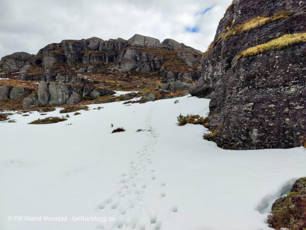 Jeg tok samme vei tilbake, men fulgte stien fra kartet tilbake til hytta på toppen av veien. Selv om stien flere steder var dekket av snø over lange stykker, gikk det hjortetråkk i snøen. Hjorten er med andre ord ikke avhengig av å se stien for å vite hvor den går.