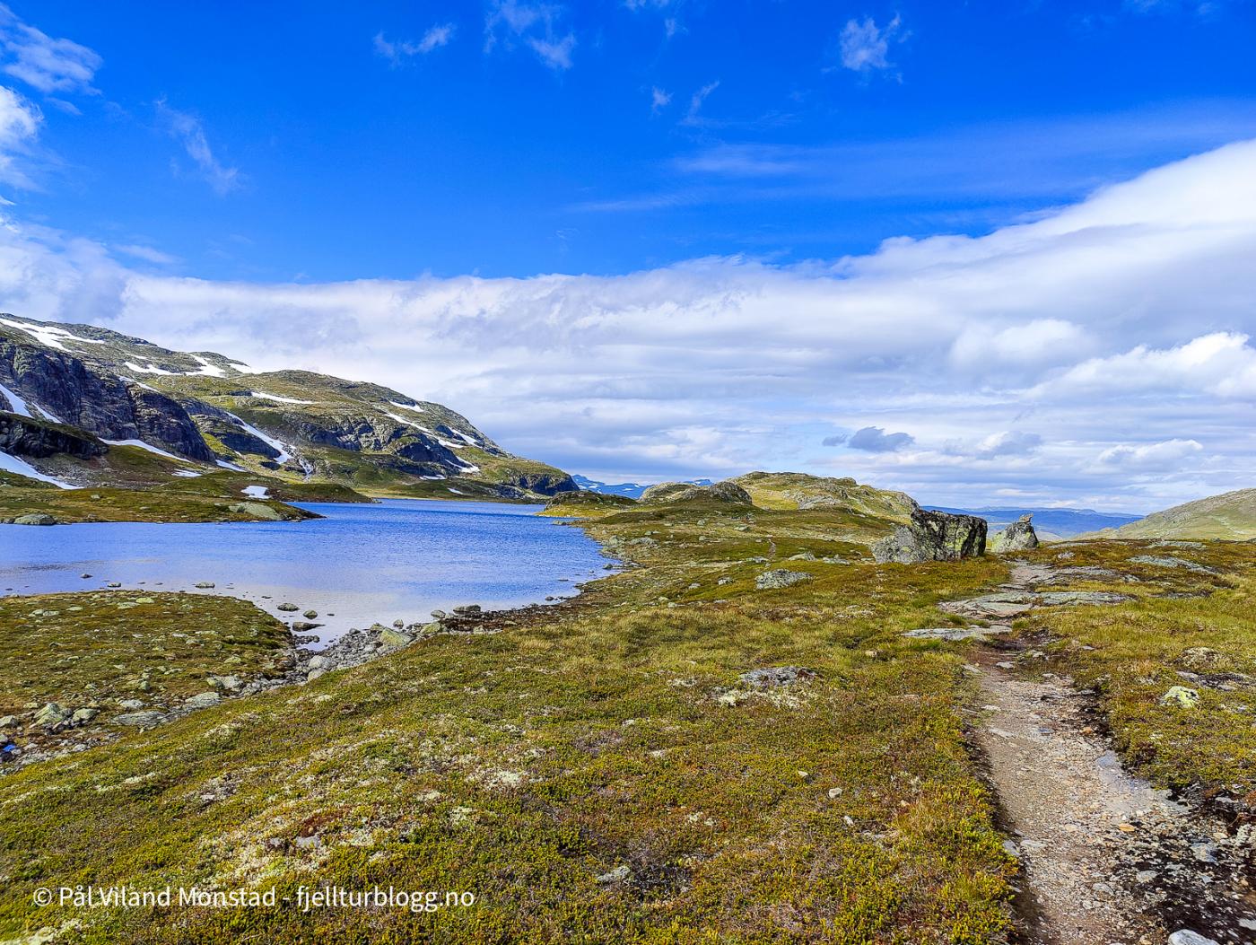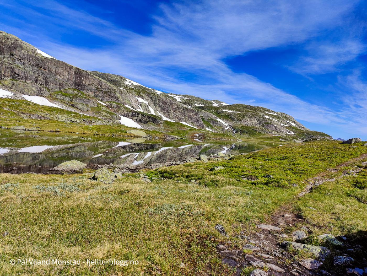 Planen var å ta turen til Kistenuten første dag, men etter som jeg kom innover på merket T-sti i retning Holmavatet, fant jeg ut at jeg ikke ville opp i skyene. Jeg fortsatte heller i retning Turistskaret, det høyeste punktet på ruta mellom DNT-hyttene på Haukeliseter og Holmavatnet.
