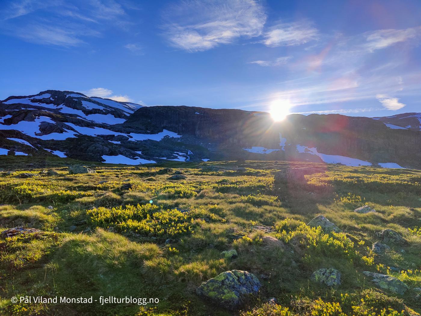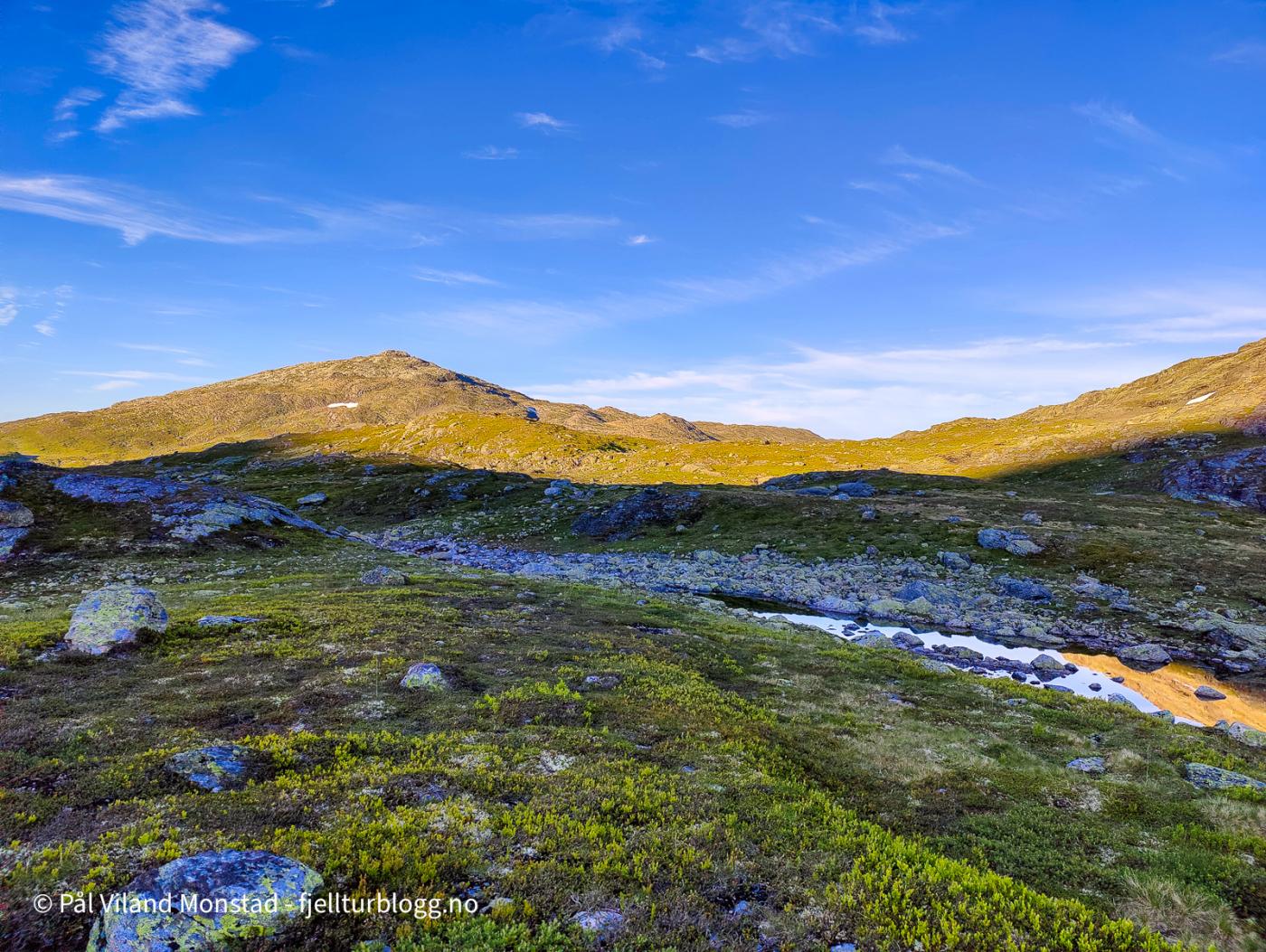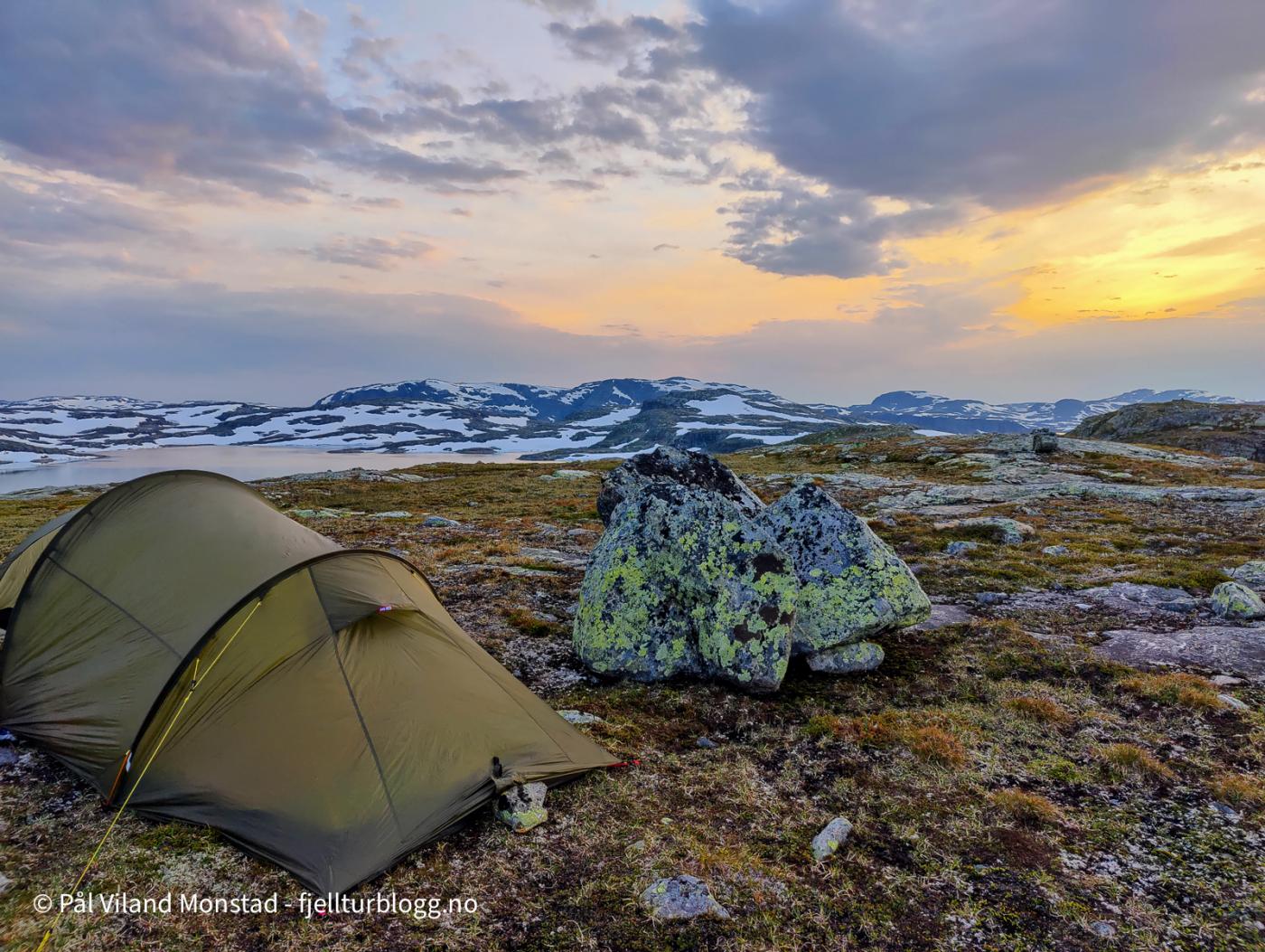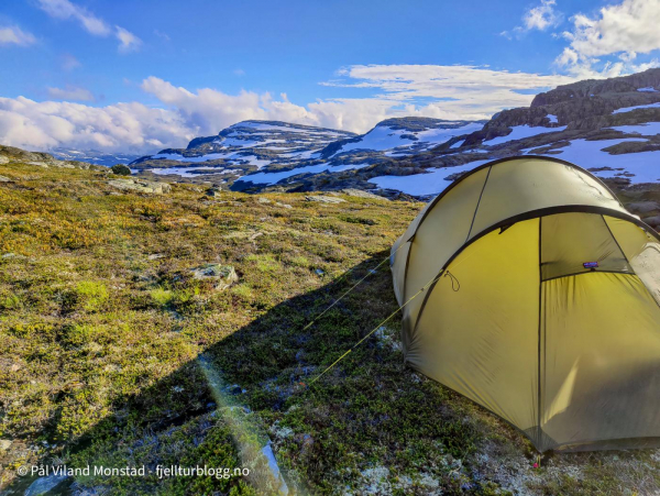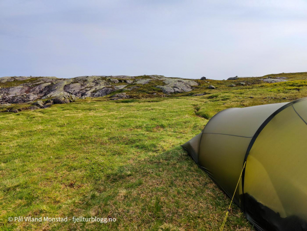 Jeg fortsatte en kort stykke ned på vestsiden av skaret, før jeg fant en fin plass til å slå opp teltet.