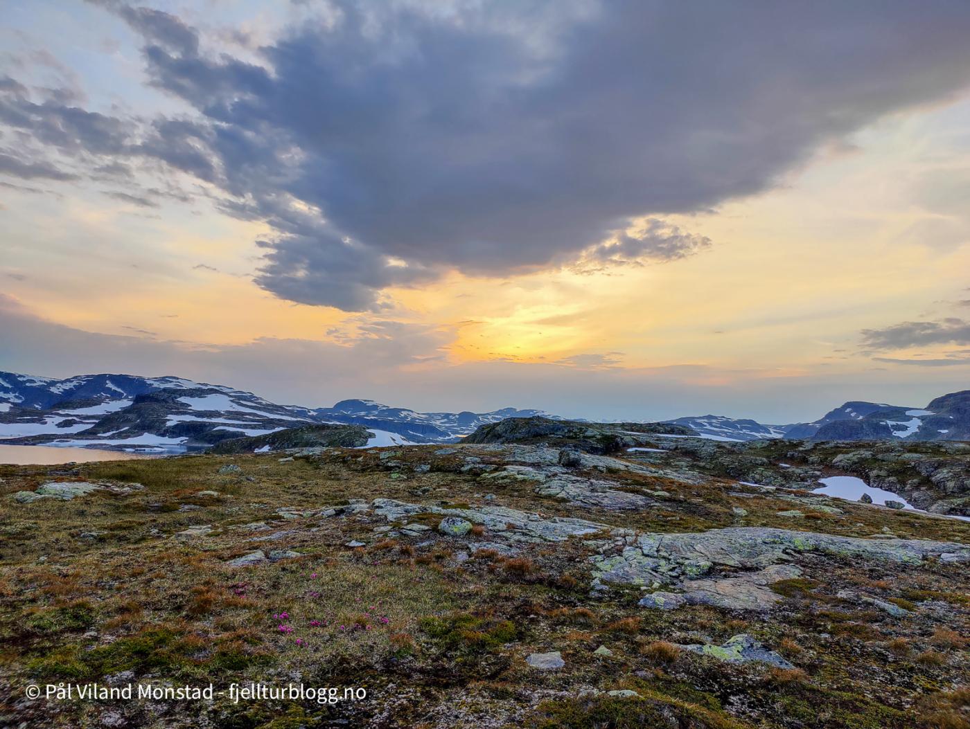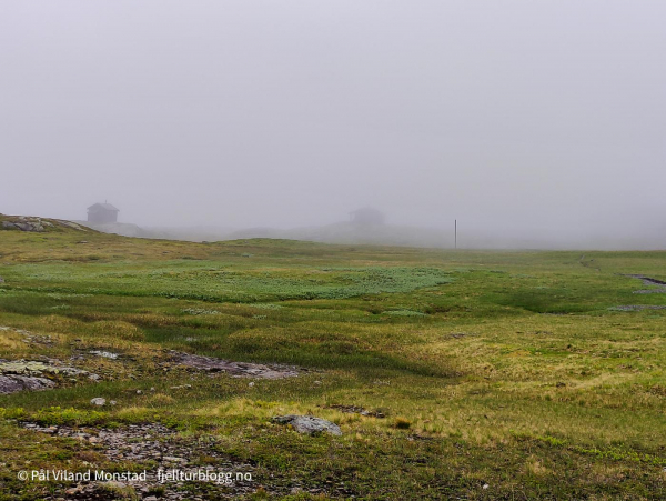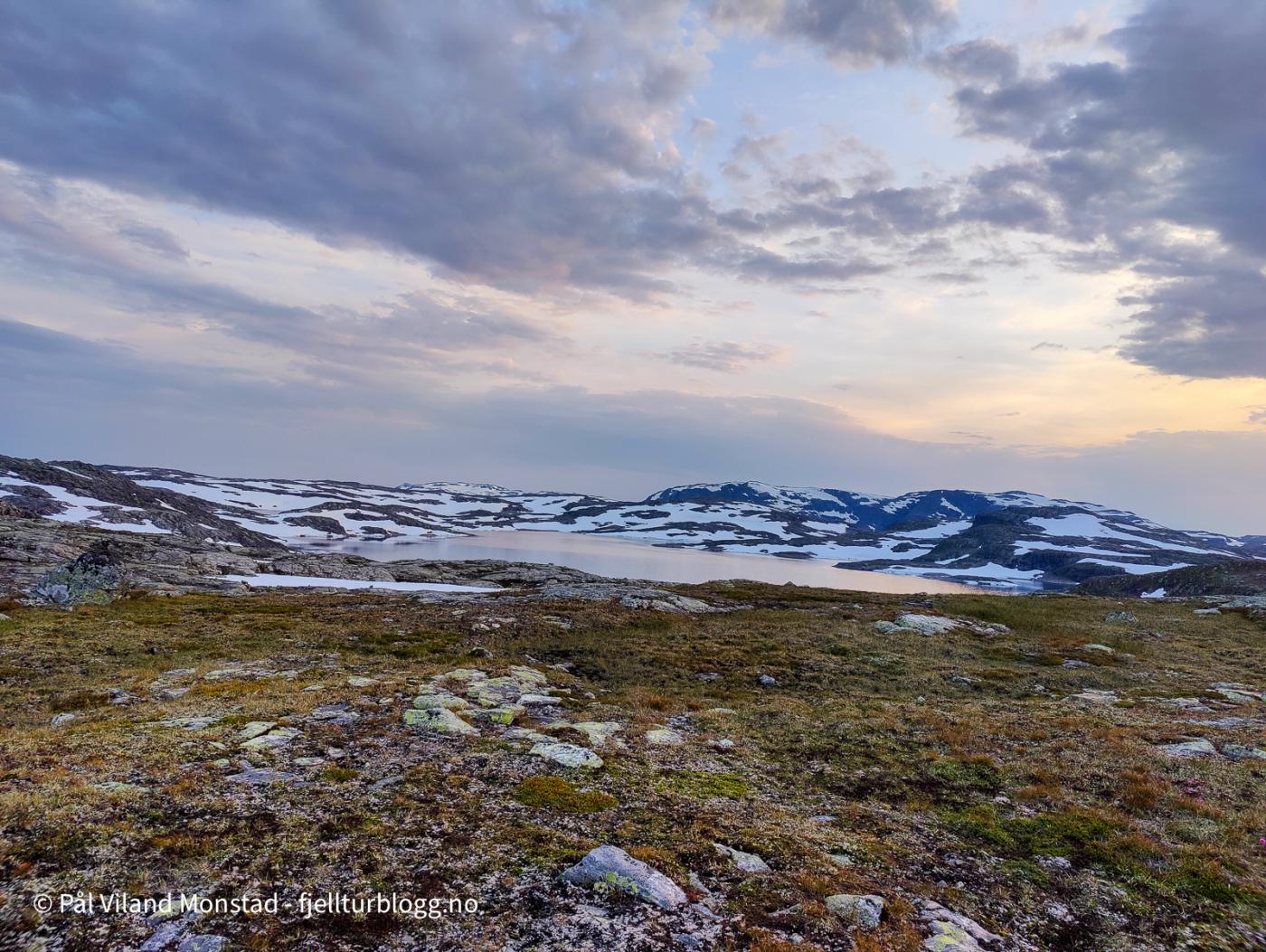 Jeg hadde ikke sovet særlig lenge, for rundt klokka 23 våkna jeg av regn på teltduken. Regnet kom og gikk gjennom hele natta, med ganske kraftige byger. Særlig på morgenkvisten regna det godt, og jeg så for meg en regntung dag tilbake mot Turistskaret.