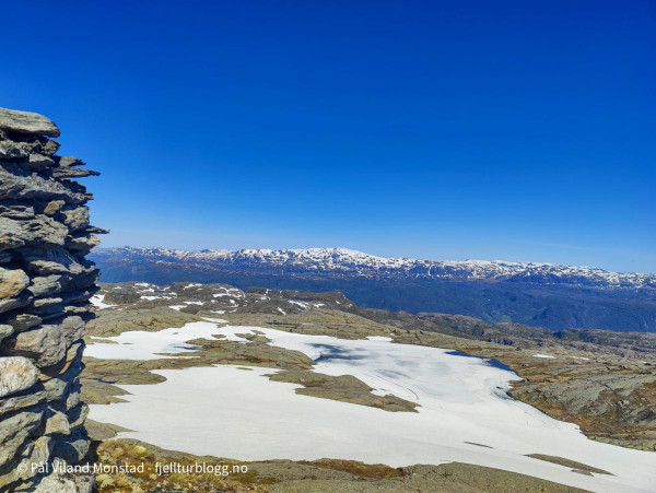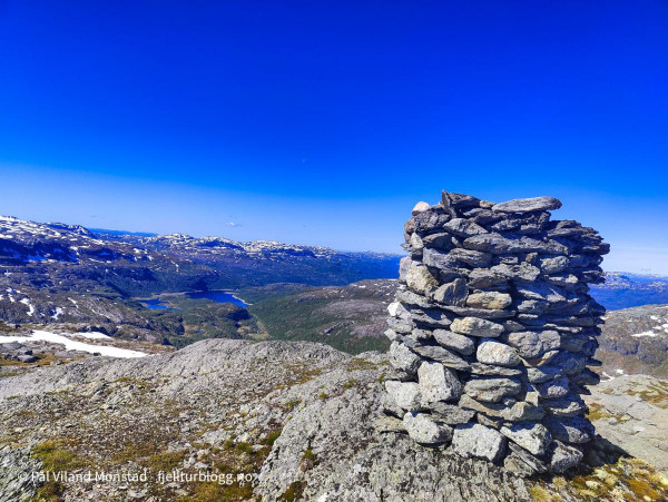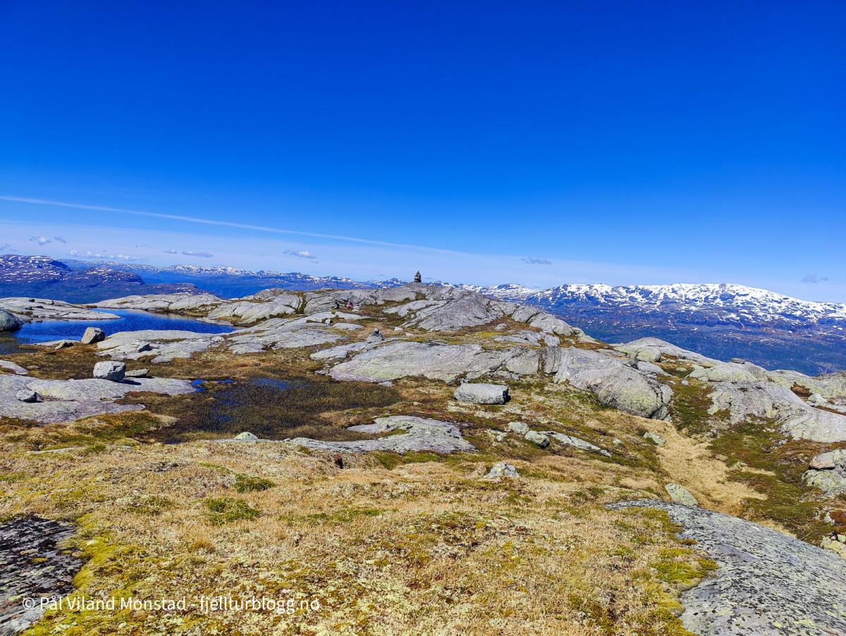 Vel oppe ved varden på 1152 moh, traff jeg på to toppsamlere fra sørfylket. De var ute i samme ærend som meg, bestige tellende Peakbook-topper i Rogaland. Rune Mork Braut og Marianne Kristiansen er kommet mye lenger enn meg, i så måte.