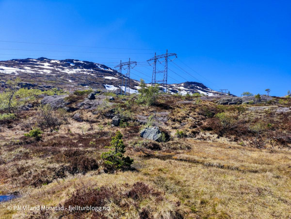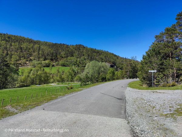 Jeg startet turen ved Kjetilstadlia, rett før Saurdal kraftstasjon. Skilt viste at her startet merket T-sti til Sandsa.