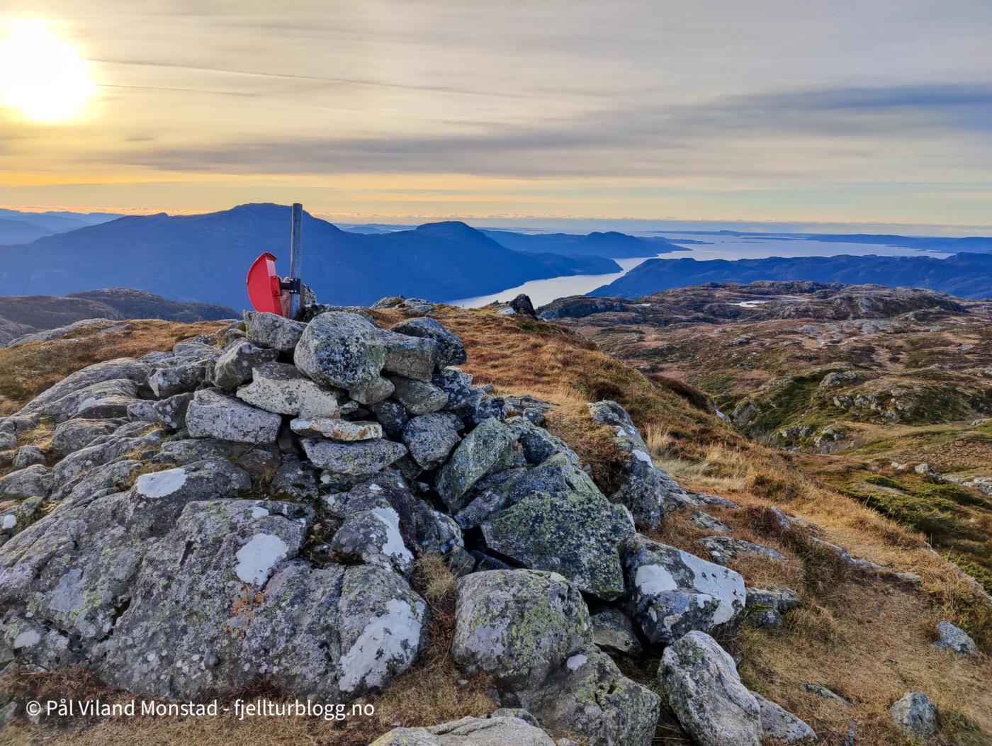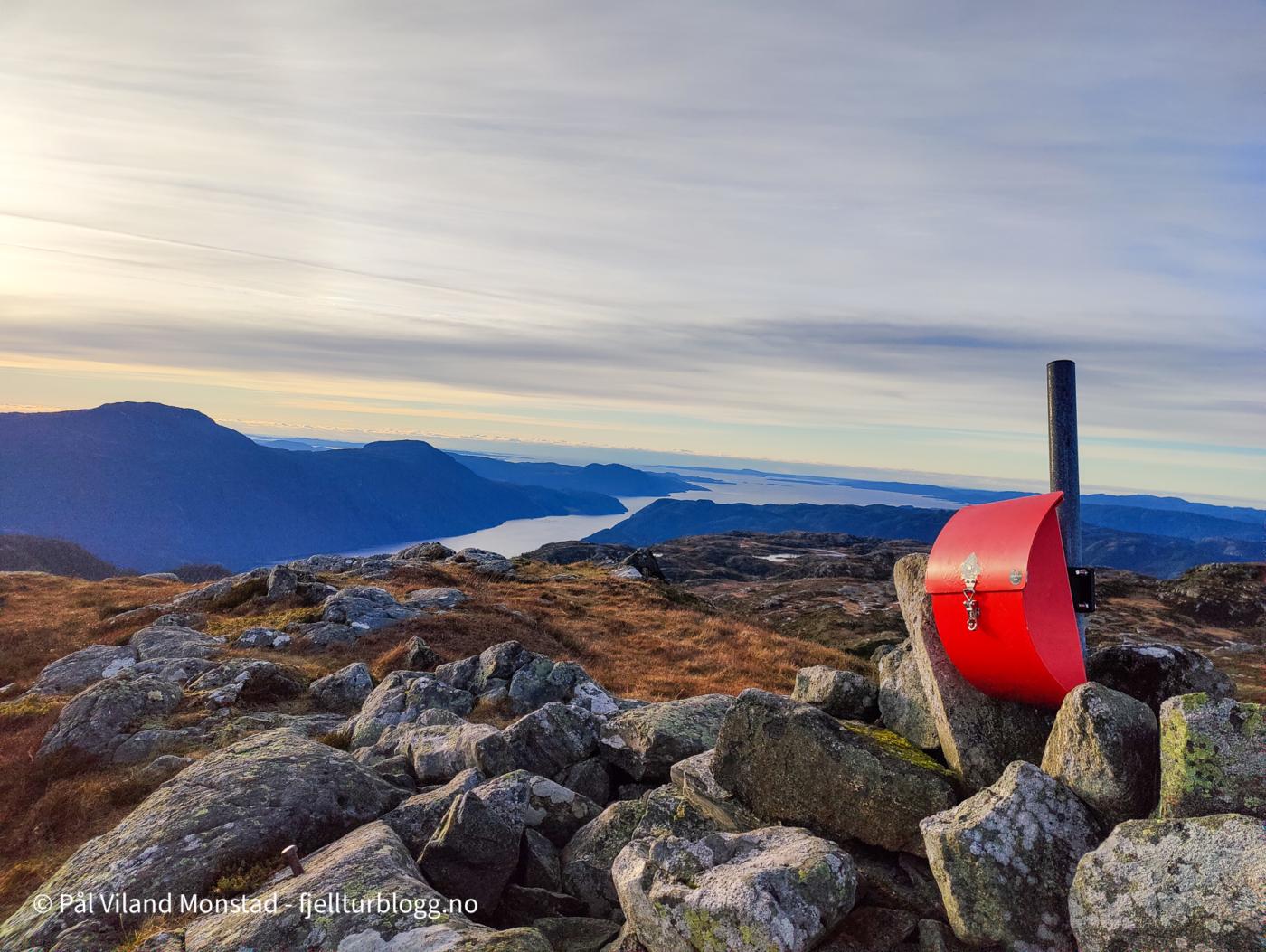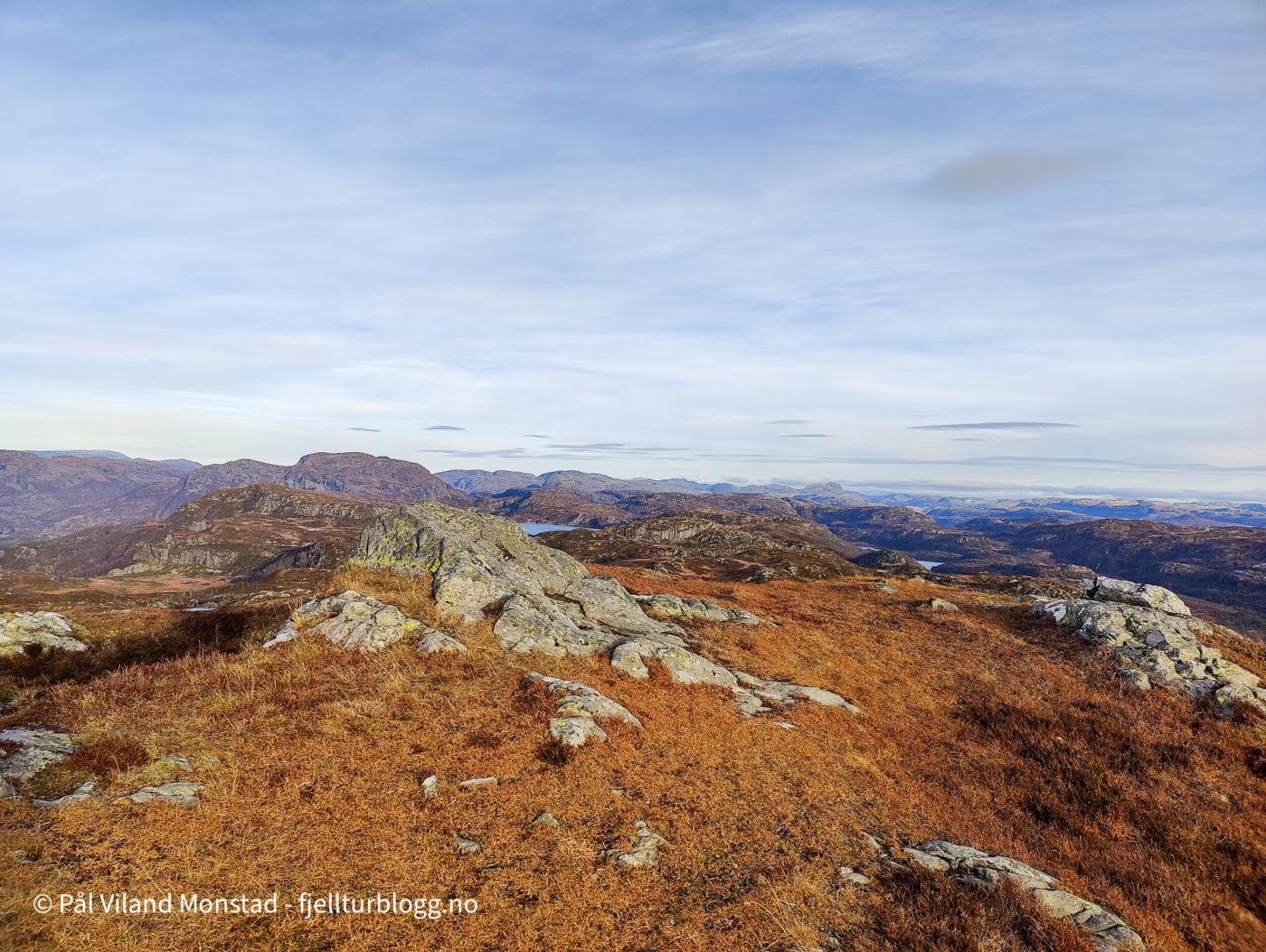 Samme vei tilbake. Absolutt en flott tur som kan anbefales til alle. Merket, lett å finne fram, og ellers ikke særlig tungt eller krevende. Godt betalt med fin utsikt fra toppen.