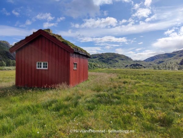 Det er merket T-rute fra Haukeliseter og sørover til Roaldkvam. Det var inn på denne stien vi kom, fra Kvanndalsdammen. Herfra er det en tur på omtrent 4 kilometer inn til hytta.