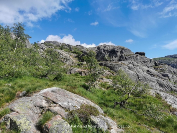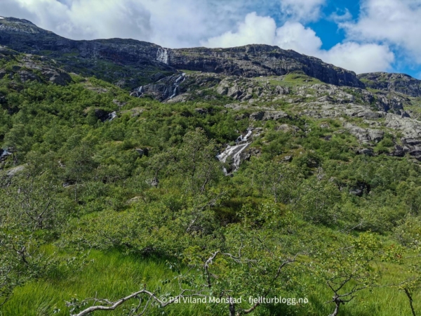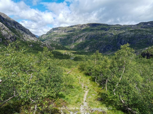 Turen inn gikk i stort sett fint vær. Noen dråper, men for det meste sol. Dagen etter var mer grå, med skydekket hengende langt nede i fjellsidene. Vi tok samme vei tilbake til bilen.
