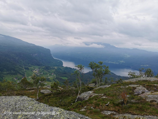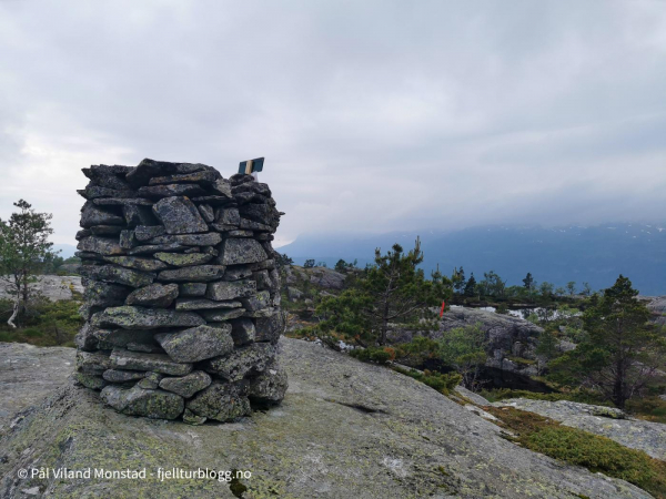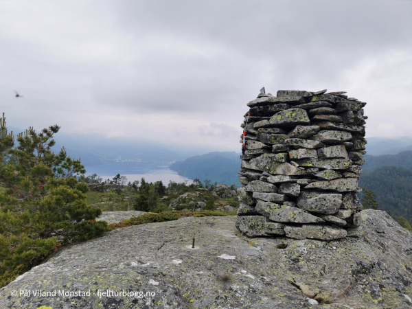 Varden og utsikten var at det staselige slaget. Fin utsikt ned til Løland og Sauda- og Hylsfjorden. Lavt skydekke la en demper på dagens utsikt. Samme vei tilbake. Tur/retur på litt mindre enn en time.