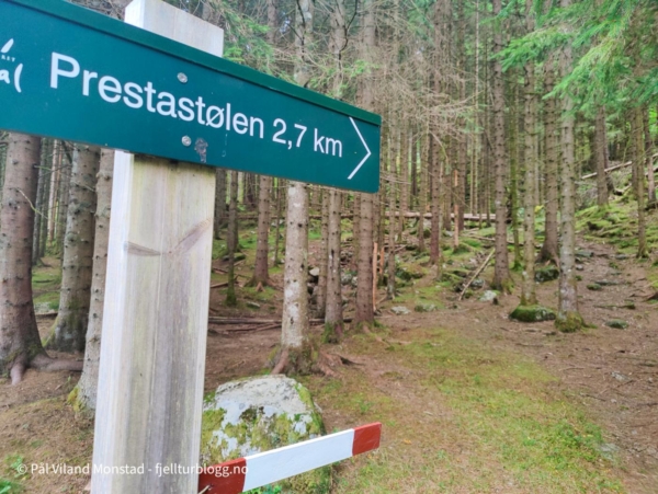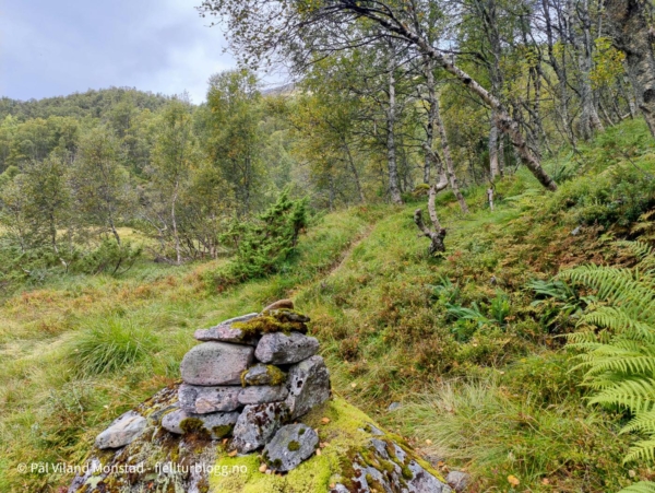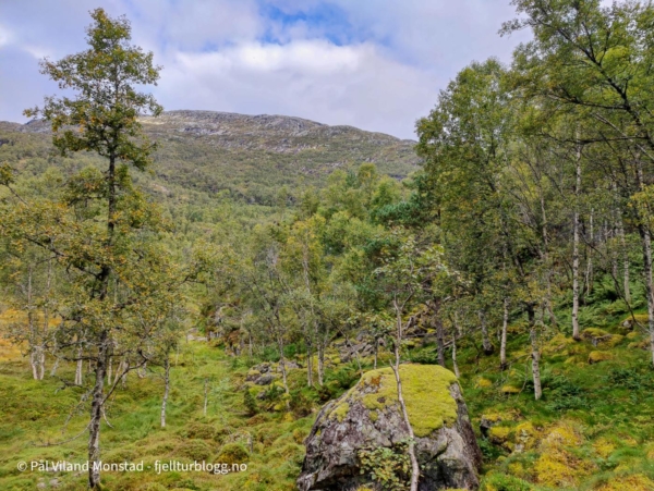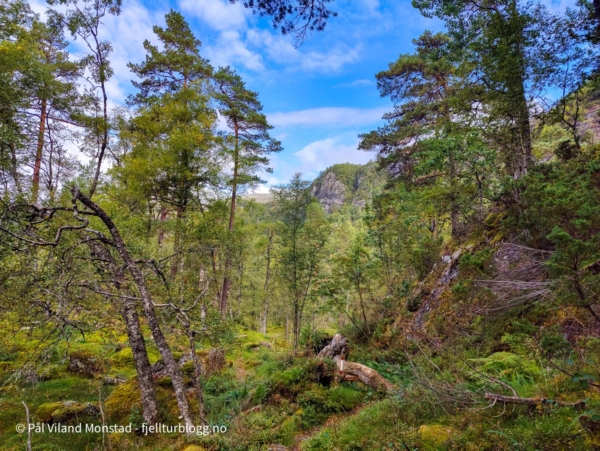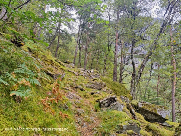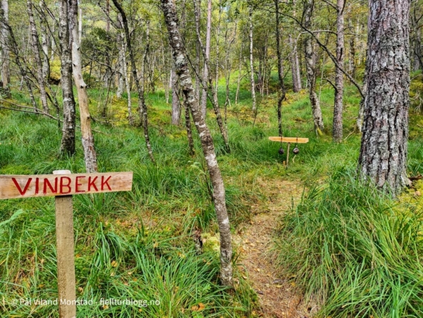 Tur til Mårheinuten har samme startpunkt som tur til Vinjanuten: Inn ved kirka på Suldalsosen, og så første vei til venstre. Parkeringsplass i enden av vegen, og turen kan starte på skogsveien, som etter noen hundre meter går over i tydelig sti. Jeg har tidligere gått til Vinjanuten, og stien opp til forbi Øvrestølen er felles for begge turene. Les mer om turen til Vinjanuten her.