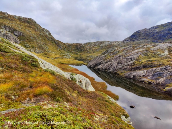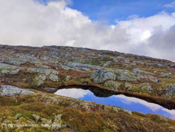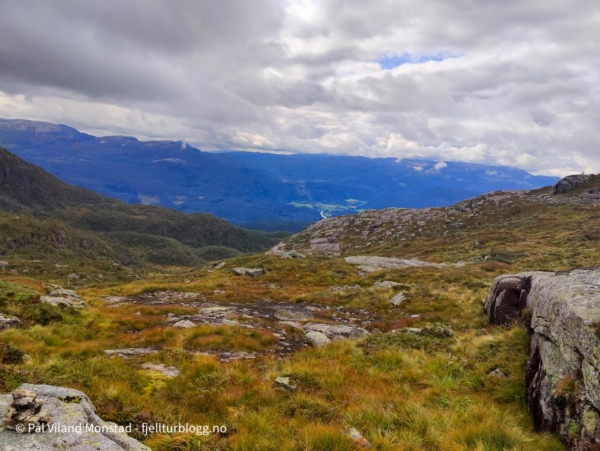 Jeg gikk samme vei tilbake, og brukte fem timer på turen, inkludert to matpauser. Ikke langt unna 1000 høydemeter fra start til topp, men på ingen måte en veldig krevende topptur.
