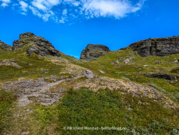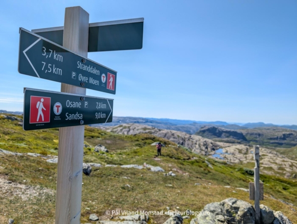 Jeg har gått denne ruta til Napen tidligere, og du kan lese om første del av turen i den turbeskrivelsen. En kilometer før toppen av Napen er det stikryss hvor man kan følge T-merket sti videre til Stranddalen.