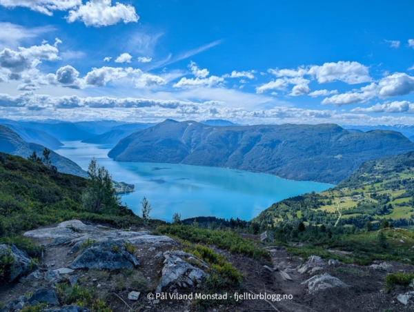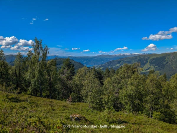 Etter som vi passerte tregrensa ble det flott utsikt over Hafslovatnet og den indre delen av Sognefjorden. Noen bratte partier var det, men disse var av det kortvarige slaget.