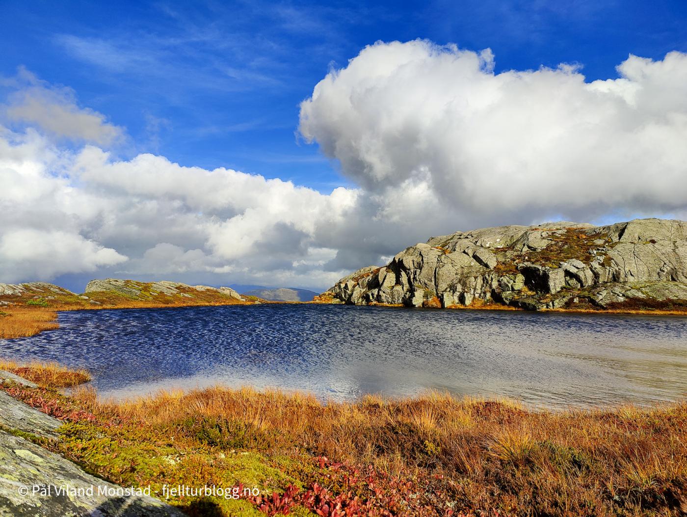 Opplevd vær og melding samsvarte ikke ved avmarsj på fastlands-Karmøy. Regn og atter regn. Såpass elendig at jeg holdt på å snu i Sandeid. Etter en god time ventetid foran peisen i Ølen, lettet det såpass at jeg fortsatte ferden innover. Igjen øste det ned i Sandeid. Typisk med grisevær i Sandeid! Jeg hadde regnklær i sekken, så det fikk nå bare bli det været det ble.