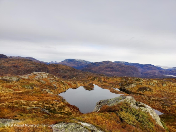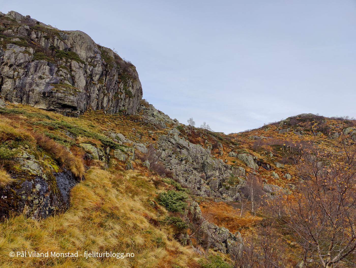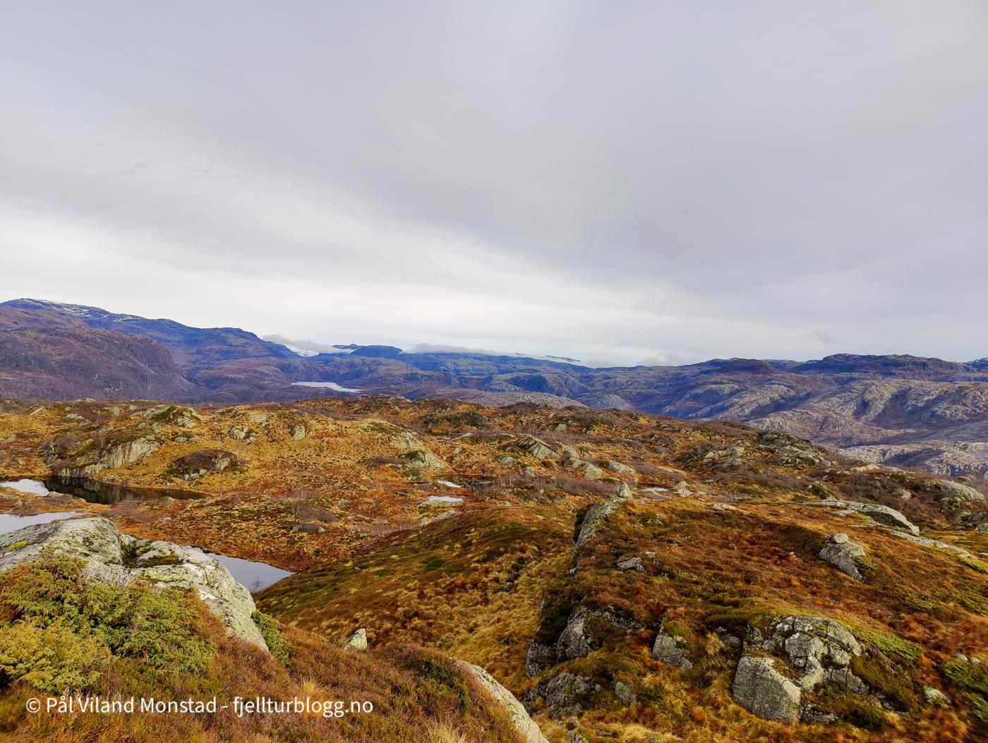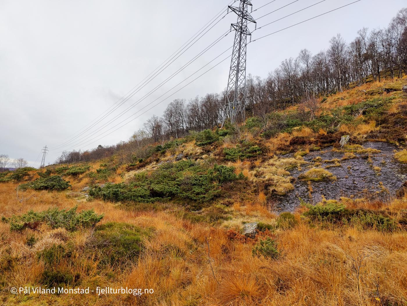 Øvstestølsnuten ligger mellom Sauda og Hellandsbygd, nordvest for Storlivatnet og veien. Bilen ble parkert ved avkjøringen til Slettedalen, og turen kunne starte på merket og tydelig sti langs kraftlinjene.