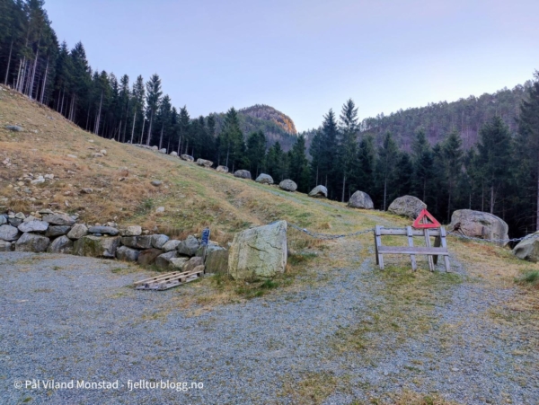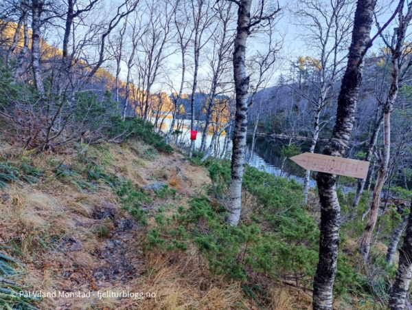 Turen til Rødsnuten i Suldal staret fra parkeringplass på Rød. Jeg tok av fra rv13 mellom Lovraeidet og Erfjord, der det står skilt mot Tysse.