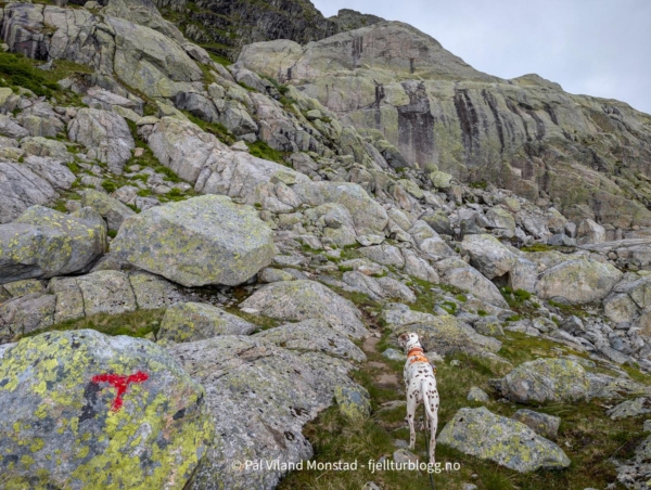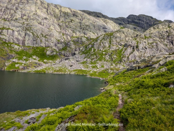 Bilen må parkeres på en lomme langs veien. Det finnes flere slike ikke langt fra skiltet som viser stistart. Etter en kort etappe på flatmark langs vannet, går det bratt oppover. Såpass bratt at turen fra dette startpunktet må sies å være krevende. Noen få korte klyvepartier er det også, men trøsten er at har man kommet seg opp den første tredjedelen er resten av turen langt lettere.