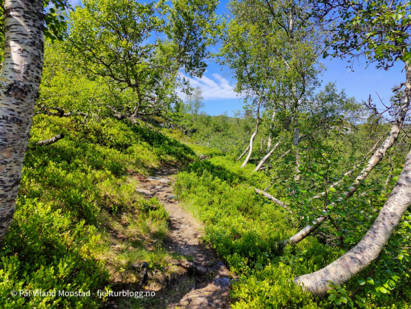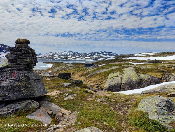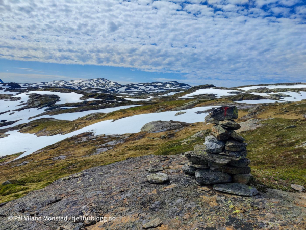 Jeg fortsate i nordøstlig retning tilbake mot ruta som er inntegnet på kartet. Varden jeg forlot på stien i retning Sandvassnuten tok igjen imot meg.. Derfra var det bare å følge nødlinger og etter hvert tydelig sti tilbake ned til Korlevoll.