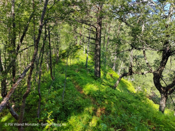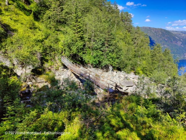 En flott, men til dels krevende tur. Her er det virkelig avgjørende å finne stien, for det er såpass bratt med stup og skrenter at feilnavigering fort kan føre til vanskeligheter. Husk også å ta med dobbelt sett med drikkeflasker som fylles nede i Eivindsåa.
