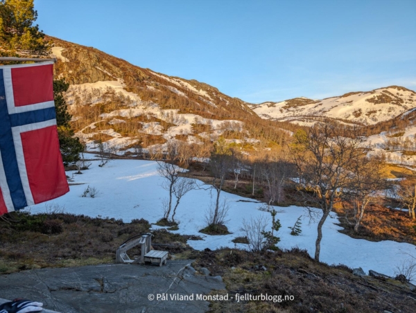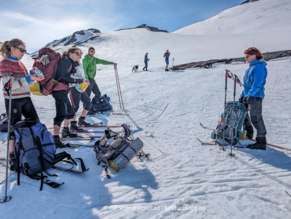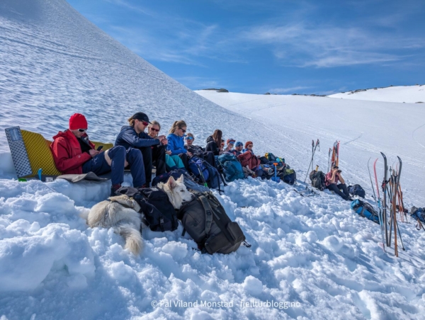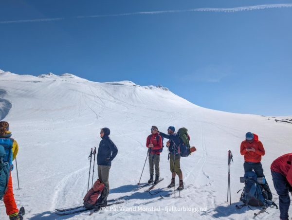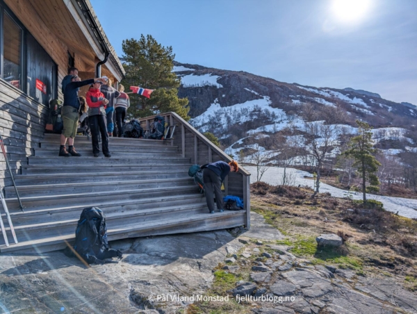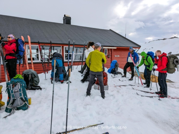 Vi var 14 turdeltakere som møttes på parkeringsplassen i Moskar fredag ettermiddag. Herfra gikk turen vekselvis på snø og barmark på grusveien, og etter hvert sti, inn til turistforeningshytta på Jonstølen. Etter en bedre middag var det bare å ta en tidlig kveld for å være best mulig uthvilt til topptur dagen etter.