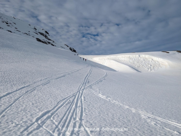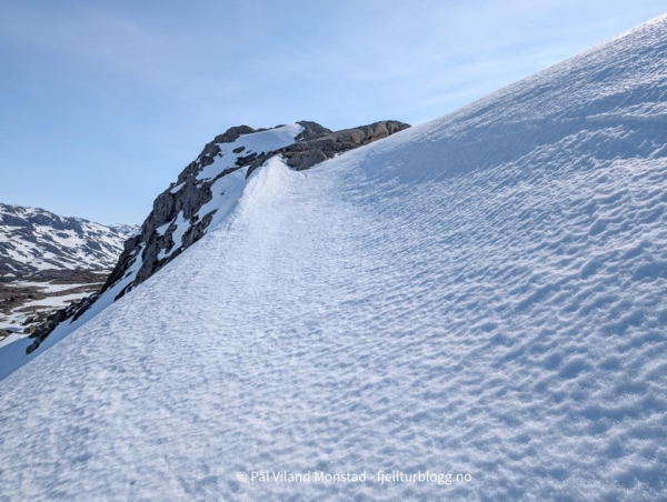 Turen vider på nordsiden av Leirdalsvatna gikk radig, siden terrenget nedover mot Krossvatnet er ganske slakt og uten større stigninger eller nedfarter. Også fra Leirnuten hadde det gått skred fra de slake svaene på sørsiden av toppen.