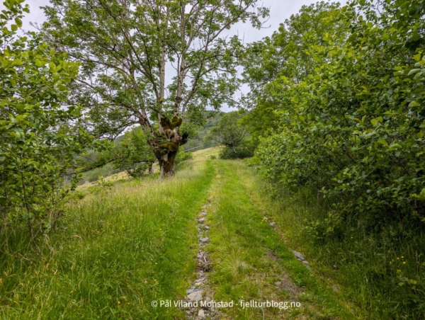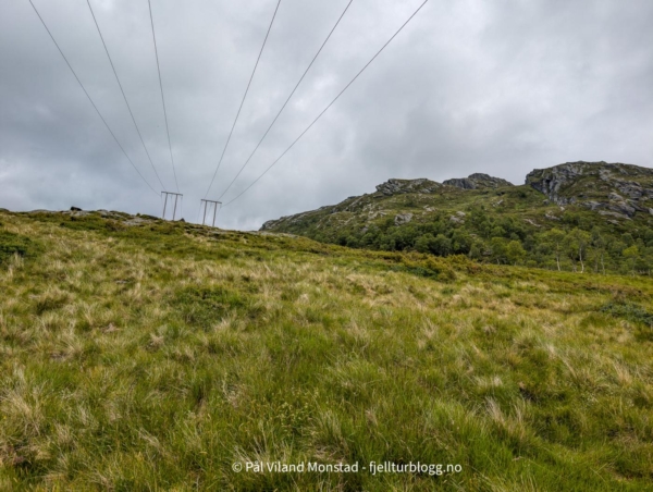 Dagen hadde ikke det beste været, så tur til Suldal ble byttet ut med tur til en lavere topp i Etne. Jeg kjørte inn Litledalen, passerte kraftstasjonen, og parkerte bilen i veikanten ved avkjøringen til Undstein. Her fulgte jeg grusvei forbi det nedlagte gardstunet, og fortsatte videre opp lia på en lite brukt traktorvei. Denne tok meg til kote 550. Ved kraftmasta tok jeg ut i terrenget.