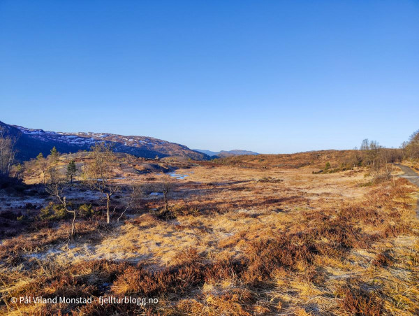 Etter mat og kaffe tok jeg turen i østlig retning, mot Staurskar. Ved stølen fant jeg den T-merka stien, og fulgte den ned til Olalia. Derfra gikk det radig videre på grusvei tilbake til bilen på Oppheim.