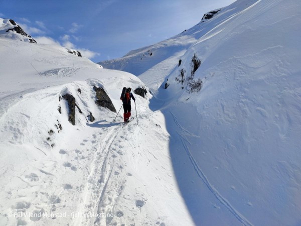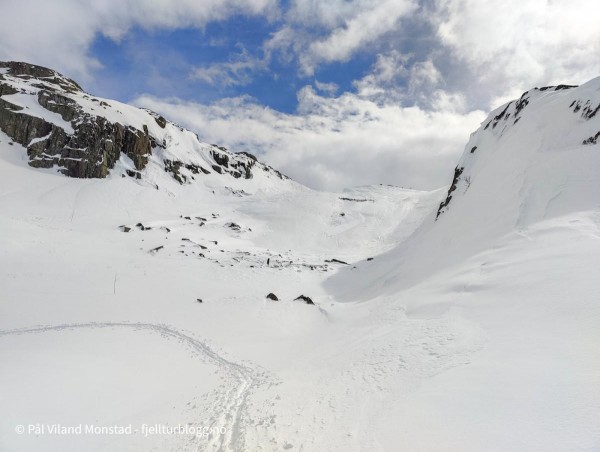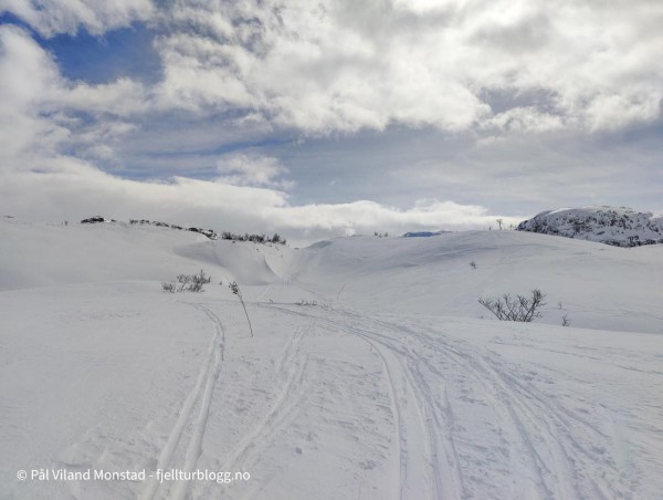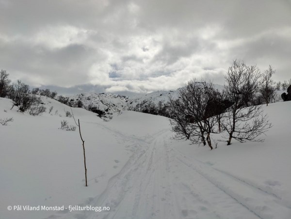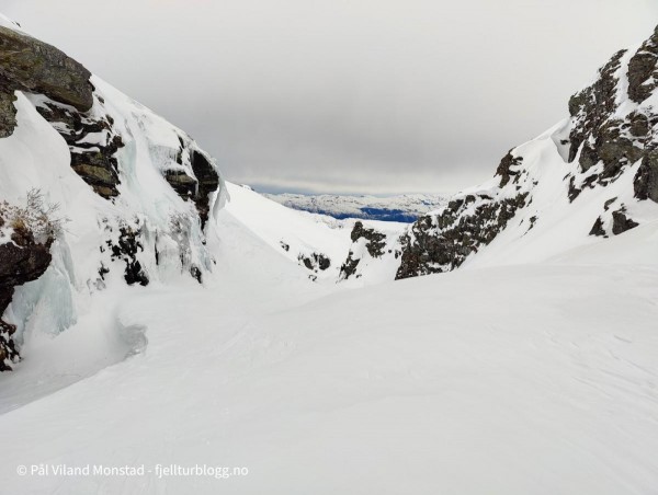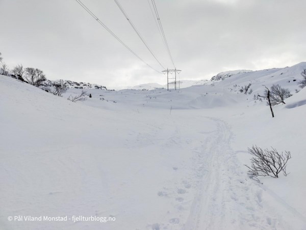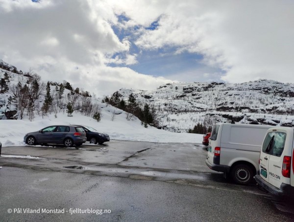 Vi startet turen ved Saurdal kraftstasjon i Suldal. Der ble bilen parkert, og turen kunne starte på kvistet løype like ved. Turen startet bratt oppover mot Grunnavatnet, hvor det flatet ut. Videre var det flere bratte kneiker før vi kom opp til Øykjaheia, med utsikt ned til Fagerstølen. Vi fulgte kvister og scooterspor. Det hadde også vært skiløpere før oss, så det var ikke noe problem å finne retning. Etter som vi nærmet oss målet sto et ganske bratt og trangt parti igjen. Vi fulgte kvista løype inn langs elva, men her kan det fort være risikabelt å gå ved skredfare. Det er nok mulig å gå rundt, eller følge den svart bratte scooter-traseen.