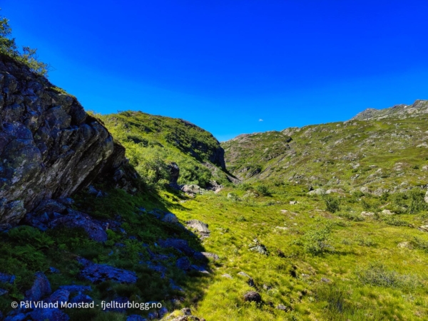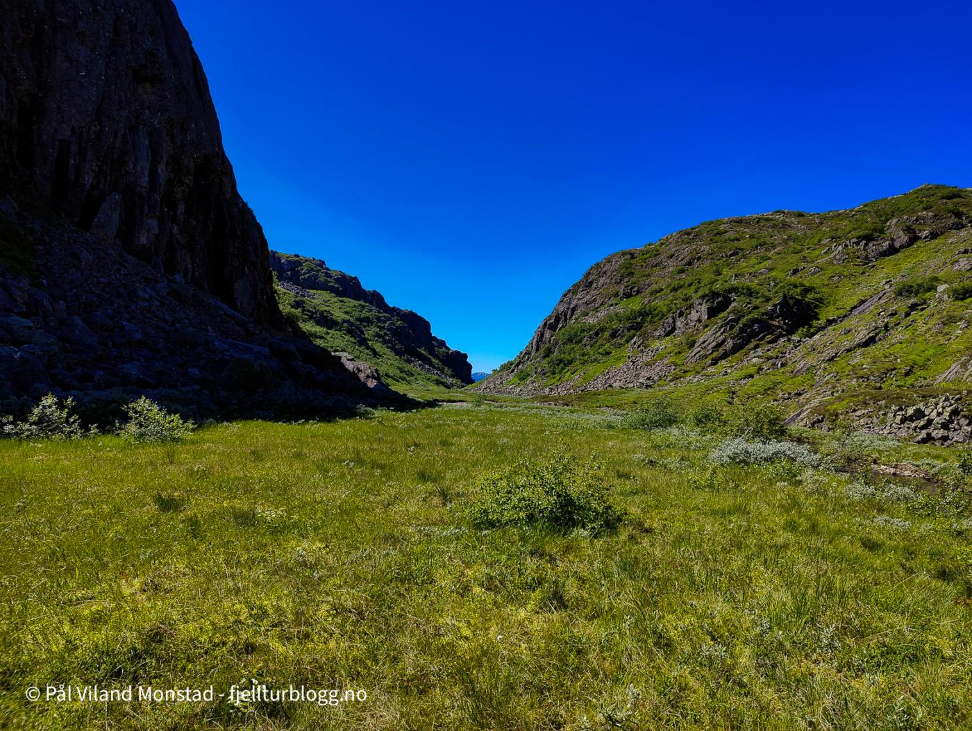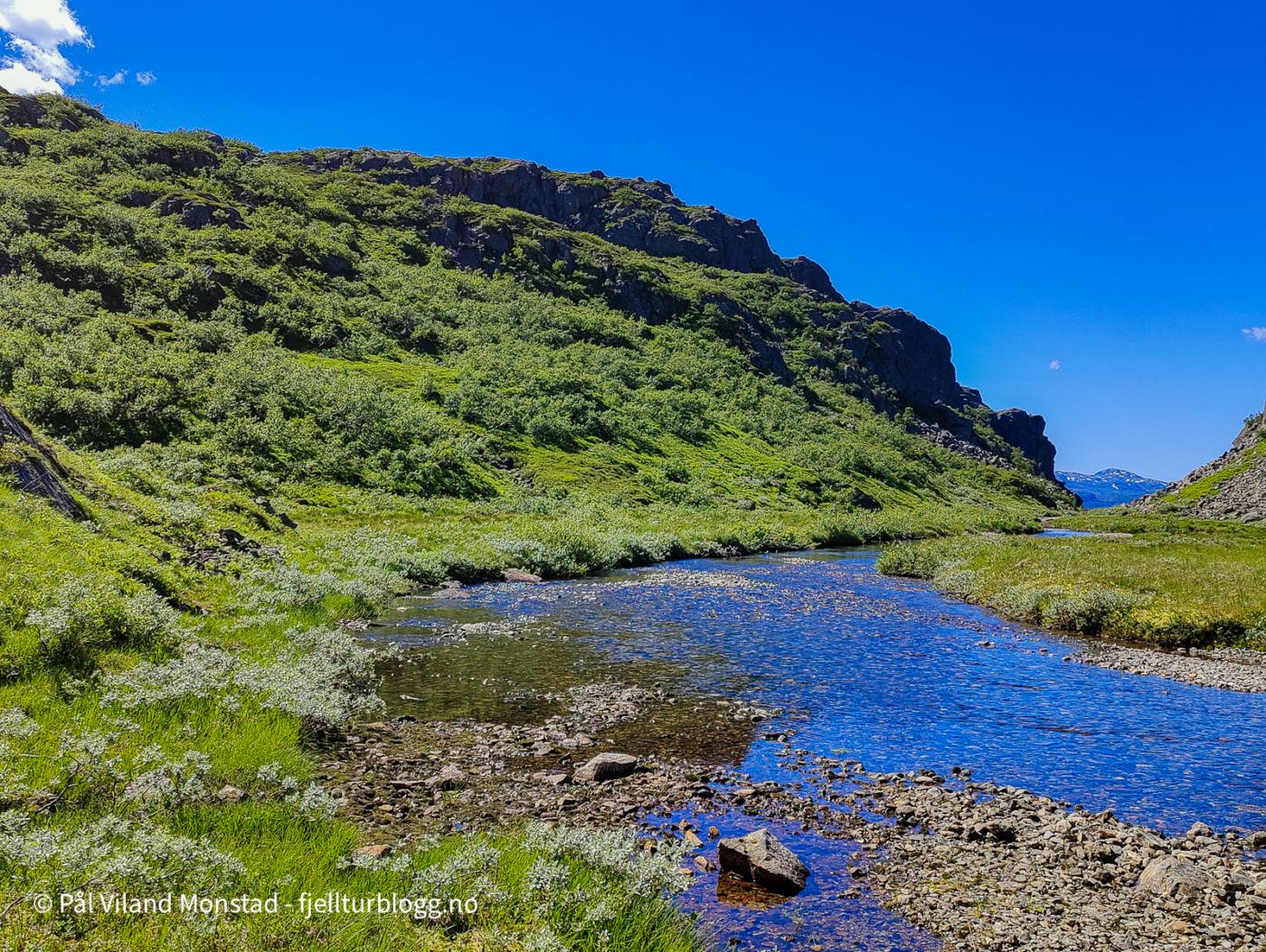 Ut fra kartet å bedømme var området jeg skulle til svært kupert, så jeg valgte å følge stien og dalføret lengst mulig. Det var antakelig lurt, for turen innover var svært fin og lettgått.