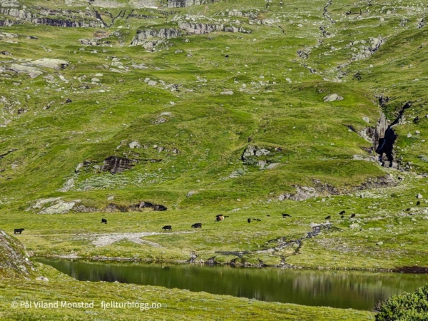 Etter en natt i telt ved Finnabuvatnet (etter å ha besøkt Faurlinuten), tok jeg turen inn i nabodalføret. Forresten godt jeg skifta mening om hvor teltet skulle stå. På veien passerte jeg en flokk storfe. Hadde i grunnen ikke tenkt at de skulle vandre oppover flere kilometer, men tanken slo meg, så jeg kjørte over brua ved Stora Kvannemo og slo opp teltet på en flate nedenfor dammen ved Finnabuvatnet.