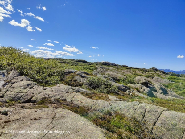 Jeg gikk i retning vann 816, før jeg dreide mer vestlig, og sørvestlig. Svært kupert terreng med knatter, skar og småvann. På en fin dag som denne, der hensikten er like mye turen som målet på toppen, gjør det absolutt ikke noe om det går litt trått med marsjfarten.