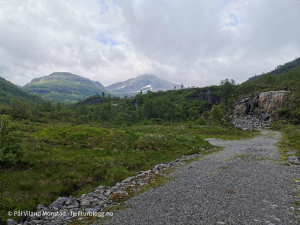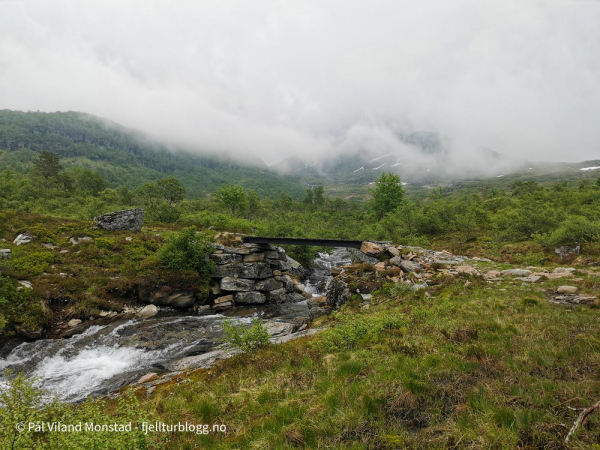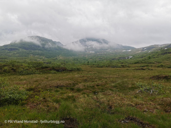 Turen startet fra parkeringsplassen i Maldal. Ført på grusvei, deretter på sti langs Maldalselva i retning Reinsvatnet. Tåka hadde fortsatt ikke lette. Det lå tåkeskyer rundt toppene i høyden, og jeg fant ut at jeg like godt kunne slå leir før jeg kom opp til Reinsvatet, siden jeg passerte en flott teltplass: Tørt og fint underlag, vindstille, og bekk rett i nærheten.