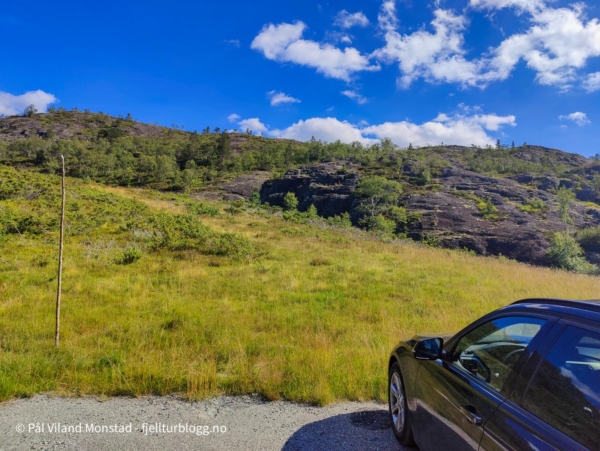 Etter teltovernatting i enden av Mosvatnet, ved Gaukstølåa, sto tur til Turrhei på programmet. Jeg parkerte bilen på parkeringsplassen i Moskar, i vestenden av Mosvatnet.