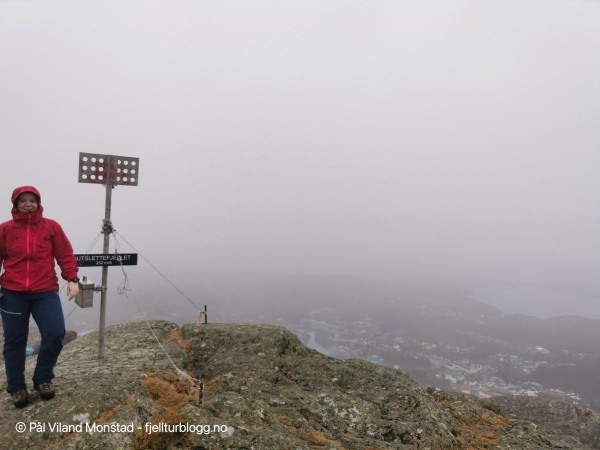 Det høyeste punktet er ikke der skilt og trigonometrisk punkt er, men på en knaus litt lenger vest. En mast med lanterne sto på toppen. Sikkert noe som har å gjøre med flyplassen på Sørstokken. En kort tur oppom, bilder, og så samme vei tilbake til bilen.