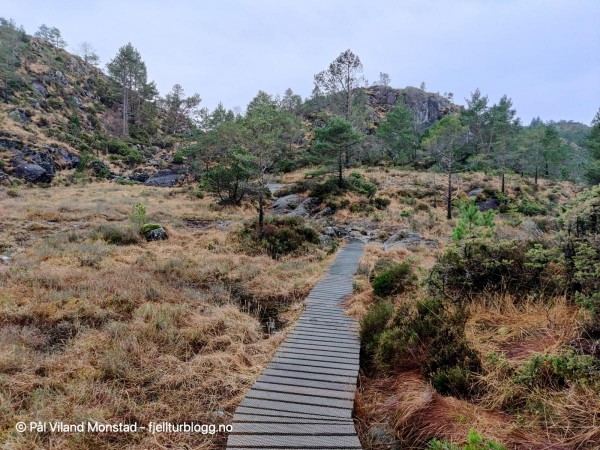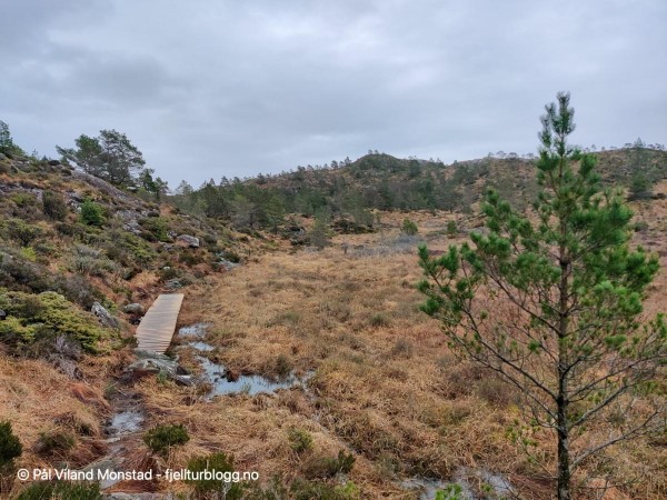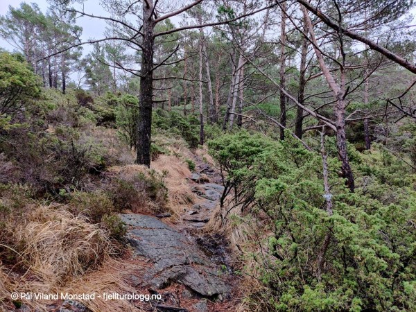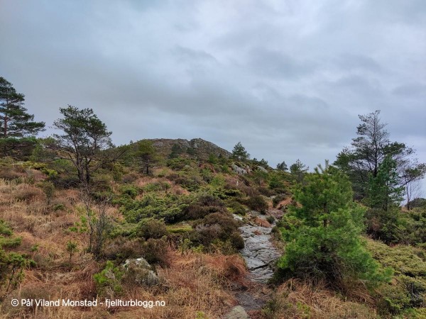 Det var tydelig sti med mange plattinger hele veien til topps. Lett å gå, og fin utsikt fra toppen. Jeg tok feil sti ned fra toppen, men kom meg inn på riktig sti ved å ta en snarvei over ei myr. Nok en påminnelse om at det er lurt å kikke på kartet. Det er lett å gå på autopilot når man kommer inn på en sti.